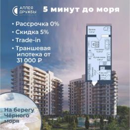 ЗВОНИТЕ ПРЯМО СЕЙЧАС, ЧТОБЫ ПОЛУЧИТЬ ВЫГОДУ ДО 650 000 руб! Цена указана со скидкой 5% при условии 100% оплаты либо ипотека. АКЦИИ: * Ипотека от 14,7% * ТРАНШЕВАЯ ИПОТЕКА - ПВ от 20%, платежи от 31000 в месяц * Рассрочка 0% до 2028г. ПВ от 20% * Скидка 5% * Бронь на 30 дней * 5 мин до моря пешком, планировки от 30 кв.м. * Высота потолков 3 м , предчистовая и чистовая отделка * Ипотека от СБЕРБАНКА * Доходность инвестиций от 30% годовых. * Сдача в аренду от управляющей компании (доверительное управление) позволяет получать доход от сдачи апартаментов без вашего участия * Безопасная сделка по ФЗ-214/эскроу-счёта "Аллея Дружбы" — это комплекс апартаментов бизнес-класса в Евпатории, расположенный в 5 минутах прогулки от золотистых пляжей Чёрного моря. Два современных 12-этажных корпуса с панорамными видами на море объединены стильным стилобатом с центральным входом и бутиковыми retail-площадями, а закрытая территория и подземный паркинг обеспечивает приватность и безопасность. АРХИТЕКТУРА И КОНСТРУКТИВНЫЕ ОСОБЕННОСТИ: • 12-этажное здание в авторском архитектурном стиле • Высота потолков (от 2,9 м до 3,1 м) • Эксклюзивное решение для первых этажей (высота потолков 3,4м) • Евро планировки с террасами и гардеробными • Панорамное ламинированное остекление • Индивидуальные келлеры • Видовые лоты на море • Высокоскоростные лифты по концепции 5* отеля • Предусмотрено резервное электроснабжение • По проекту предусмотрено место для кондиционера и практическое решение для маскировки коммуникаций ЛОКАЦИЯ И ОКРУЖЕНИЕ: • До центра Евпатории - 7 минут на машине • Пляж - всего 5 минут пешком • Рядом с комплексом развитая инфраструктура (рестораны, магазины, кафе, медицинские учреждения, санатории) ГОСТЕПРИИМСТВО И БЕЗУПРЕЧНЫЕ СЕРВИСЫ: • Управляющая компания премиум-класса • Консъерж-сервис 24/7 • Доставки продуктов и готовой еды • Зона ресепшн оформлена в стилистике комплекса • Лобби с атмосферным кафе и зонами для чтения • Премиальное решение для мест общего пользования • Интерактивная детская комната для самых маленьких • Пункты выдачи товаров от маркетплейсов • Гостевые парковочные места • Организовано место для хранения колясок ваших малышей • Ремонт на выбор "Комфорт-формат" и "Гранд-формат" БЕЗОПАСНОСТЬ И ТЕХНОЛОГИИ СПОКОЙСТВИЯ: • Закрытая территория, двор без машин • Система контроля доступа (строго по электронным пропускам) • Подземный паркинг с тремя типами машиномест • Выделенные места для велосипедов • Камеры видеонаблюдения • Круглосуточный ресепшн • Телеметрия - автоматический сбор и передача данных с приборов учета апартамента минимизирует ошибки и мошенничество • Система умного апартамента с дистанционным управлением БЛАГОУСТРОЙСТВО ТЕРРИТОРИИ: • Ландшафтный дизайн по проекту (2 334 м² озеленения) • Прогулочные аллеи и зоны отдыха для расслабления и медитации • Коворкинг-зоны с высокоскоростным Wi-Fi для бизнес-переговоров • Детские и спортивные площадки • В апарт-комплексе вас ждут мини-маркет и магазин повседневных товаров