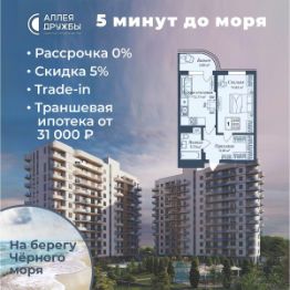 ЗВОНИТЕ ПРЯМО СЕЙЧАС, ЧТОБЫ ПОЛУЧИТЬ ВЫГОДУ ДО 650 000 руб! АКЦИИ: * Ипотека от 14,7% * ТРАНШЕВАЯ ИПОТЕКА - ПВ от 20%, платежи от 31000 в месяц * Рассрочка 0% до 2028г. ПВ от 20% * Скидка 5% * Бронь на 30 дней * 5 мин до моря пешком, планировки от 30 кв.м. * Высота потолков 3 м , предчистовая и чистовая отделка * Ипотека от СБЕРБАНКА * Доходность инвестиций от 30% годовых. * Сдача в аренду от управляющей компании (доверительное управление) позволяет получать доход от сдачи апартаментов без вашего участия * Безопасная сделка по ФЗ-214/эскроу-счёта "Аллея Дружбы" — это комплекс апартаментов бизнес-класса в Евпатории, расположенный в 5 минутах прогулки от золотистых пляжей Чёрного моря. Два современных 12-этажных корпуса с панорамными видами на море объединены стильным стилобатом с центральным входом и бутиковыми retail-площадями, а закрытая территория и подземный паркинг обеспечивает приватность и безопасность. АРХИТЕКТУРА И КОНСТРУКТИВНЫЕ ОСОБЕННОСТИ: • 12-этажное здание в авторском архитектурном стиле • Высота потолков (от 2,9 м до 3,1 м) • Эксклюзивное решение для первых этажей (высота потолков 3,4м) • Евро планировки с террасами и гардеробными • Панорамное ламинированное остекление • Индивидуальные келлеры • Видовые лоты на море • Высокоскоростные лифты по концепции 5* отеля • Предусмотрено резервное электроснабжение • По проекту предусмотрено место для кондиционера и практическое решение для маскировки коммуникаций ЛОКАЦИЯ И ОКРУЖЕНИЕ: • До центра Евпатории - 7 минут на машине • Пляж - всего 5 минут пешком • Рядом с комплексом развитая инфраструктура (рестораны, магазины, кафе, медицинские учреждения, санатории) ГОСТЕПРИИМСТВО И БЕЗУПРЕЧНЫЕ СЕРВИСЫ: • Управляющая компания премиум-класса • Консъерж-сервис 24/7 • Доставки продуктов и готовой еды • Зона ресепшн оформлена в стилистике комплекса • Лобби с атмосферным кафе и зонами для чтения • Премиальное решение для мест общего пользования • Интерактивная детская комната для самых маленьких • Пункты выдачи товаров от маркетплейсов • Гостевые парковочные места • Организовано место для хранения колясок ваших малышей • Ремонт на выбор "Комфорт-формат" и "Гранд-формат" БЕЗОПАСНОСТЬ И ТЕХНОЛОГИИ СПОКОЙСТВИЯ: • Закрытая территория, двор без машин • Система контроля доступа (строго по электронным пропускам) • Подземный паркинг с тремя типами машиномест • Выделенные места для велосипедов • Камеры видеонаблюдения • Круглосуточный ресепшн • Телеметрия - автоматический сбор и передача данных с приборов учета апартамента минимизирует ошибки и мошенничество • Система умного апартамента с дистанционным управлением БЛАГОУСТРОЙСТВО ТЕРРИТОРИИ: • Ландшафтный дизайн по проекту (2 334 м² озеленения) • Прогулочные аллеи и зоны отдыха для расслабления и медитации • Коворкинг-зоны с высокоскоростным Wi-Fi для бизнес-переговоров • Детские и спортивные площадки • В апарт-комплексе вас ждут мини-маркет и магазин повседневных товаров • Специальное пространство для курения • Выделенная площадка для