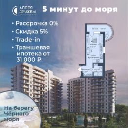 ЗВОНИТЕ ПРЯМО СЕЙЧАС, ЧТОБЫ ПОЛУЧИТЬ ВЫГОДУ ДО 650 000 руб! Цена указана со скидкой 5% при условии 100% оплаты либо ипотека. АКЦИИ: * Ипотека от 14,7% * ТРАНШЕВАЯ ИПОТЕКА - ПВ от 20%, платежи от 31000 в месяц * Рассрочка 0% до 2028г. ПВ от 20% * Скидка 5% * Бронь на 30 дней * 5 мин до моря пешком, планировки от 30 кв.м. * Высота потолков 3 м , предчистовая и чистовая отделка * Ипотека от СБЕРБАНКА * Доходность инвестиций от 30% годовых. * Сдача в аренду от управляющей компании (доверительное управление) позволяет получать доход от сдачи апартаментов без вашего участия * Безопасная сделка по ФЗ-214/эскроу-счёта "Аллея Дружбы" — это комплекс апартаментов бизнес-класса в Евпатории, расположенный в 5 минутах прогулки от золотистых пляжей Чёрного моря. Два современных 12-этажных корпуса с панорамными видами на море объединены стильным стилобатом с центральным входом и бутиковыми retail-площадями, а закрытая территория и подземный паркинг обеспечивает приватность и безопасность. АРХИТЕКТУРА И КОНСТРУКТИВНЫЕ ОСОБЕННОСТИ: • 12-этажное здание в авторском архитектурном стиле • Высота потолков (от 2,9 м до 3,1 м) • Эксклюзивное решение для первых этажей (высота потолков 3,4м) • Евро планировки с террасами и гардеробными • Панорамное ламинированное остекление • Индивидуальные келлеры • Видовые лоты на море • Высокоскоростные лифты по концепции 5* отеля • Предусмотрено резервное электроснабжение • По проекту предусмотрено место для кондиционера и практическое решение для маскировки коммуникаций ЛОКАЦИЯ И ОКРУЖЕНИЕ: • До центра Евпатории - 7 минут на машине • Пляж - всего 5 минут пешком • Рядом с комплексом развитая инфраструктура (рестораны, магазины, кафе, медицинские учреждения, санатории) ГОСТЕПРИИМСТВО И БЕЗУПРЕЧНЫЕ СЕРВИСЫ: • Управляющая компания премиум-класса • Консъерж-сервис 24/7 • Доставки продуктов и готовой еды • Зона ресепшн оформлена в стилистике комплекса • Лобби с атмосферным кафе и зонами для чтения • Премиальное решение для мест общего пользования • Интерактивная детская комната для самых маленьких • Пункты выдачи товаров от маркетплейсов • Гостевые парковочные места • Организовано место для хранения колясок ваших малышей • Ремонт на выбор "Комфорт-формат" и "Гранд-формат" БЕЗОПАСНОСТЬ И ТЕХНОЛОГИИ СПОКОЙСТВИЯ: • Закрытая территория, двор без машин • Система контроля доступа (строго по электронным пропускам) • Подземный паркинг с тремя типами машиномест • Выделенные места для велосипедов • Камеры видеонаблюдения • Круглосуточный ресепшн • Телеметрия - автоматический сбор и передача данных с приборов учета апартамента минимизирует ошибки и мошенничество • Система умного апартамента с дистанционным управлением БЛАГОУСТРОЙСТВО ТЕРРИТОРИИ: • Ландшафтный дизайн по проекту (2 334 м² озеленения) • Прогулочные аллеи и зоны отдыха для расслабления и медитации • Коворкинг-зоны с высокоскоростным Wi-Fi для бизнес-переговоров • Детские и спортивные площадки • В апарт-комплексе вас ждут мини-маркет и магазин повседневных товаров