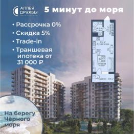 ЗВОНИТЕ ПРЯМО СЕЙЧАС, ЧТОБЫ ПОЛУЧИТЬ ВЫГОДУ ДО 650 000 руб! Цена указана со скидкой 5% при условии 100% оплаты либо ипотека. АКЦИИ: * Ипотека от 14,7% * ТРАНШЕВАЯ ИПОТЕКА - ПВ от 20%, платежи от 31000 в месяц * Рассрочка 0% до 2028г. ПВ от 20% * Скидка 5% * Бронь на 30 дней * 5 мин до моря пешком, планировки от 30 кв.м. * Высота потолков 3 м , предчистовая и чистовая отделка * Ипотека от СБЕРБАНКА * Доходность инвестиций от 30% годовых. * Сдача в аренду от управляющей компании (доверительное управление) позволяет получать доход от сдачи апартаментов без вашего участия * Безопасная сделка по ФЗ-214/эскроу-счёта "Аллея Дружбы" — это комплекс апартаментов бизнес-класса в Евпатории, расположенный в 5 минутах прогулки от золотистых пляжей Чёрного моря. Два современных 12-этажных корпуса с панорамными видами на море объединены стильным стилобатом с центральным входом и бутиковыми retail-площадями, а закрытая территория и подземный паркинг обеспечивает приватность и безопасность. АРХИТЕКТУРА И КОНСТРУКТИВНЫЕ ОСОБЕННОСТИ: • 12-этажное здание в авторском архитектурном стиле • Высота потолков (от 2,9 м до 3,1 м) • Эксклюзивное решение для первых этажей (высота потолков 3,4м) • Евро планировки с террасами и гардеробными • Панорамное ламинированное остекление • Индивидуальные келлеры • Видовые лоты на море • Высокоскоростные лифты по концепции 5* отеля • Предусмотрено резервное электроснабжение • По проекту предусмотрено место для кондиционера и практическое решение для маскировки коммуникаций ЛОКАЦИЯ И ОКРУЖЕНИЕ: • До центра Евпатории - 7 минут на машине • Пляж - всего 5 минут пешком • Рядом с комплексом развитая инфраструктура (рестораны, магазины, кафе, медицинские учреждения, санатории) ГОСТЕПРИИМСТВО И БЕЗУПРЕЧНЫЕ СЕРВИСЫ: • Управляющая компания премиум-класса • Консъерж-сервис 24/7 • Доставки продуктов и готовой еды • Зона ресепшн оформлена в стилистике комплекса • Лобби с атмосферным кафе и зонами для чтения • Премиальное решение для мест общего пользования • Интерактивная детская комната для самых маленьких • Пункты выдачи товаров от маркетплейсов • Гостевые парковочные места • Организовано место для хранения колясок ваших малышей • Ремонт на выбор "Комфорт-формат" и "Гранд-формат" БЕЗОПАСНОСТЬ И ТЕХНОЛОГИИ СПОКОЙСТВИЯ: • Закрытая территория, двор без машин • Система контроля доступа (строго по электронным пропускам) • Подземный паркинг с тремя типами машиномест • Выделенные места для велосипедов • Камеры видеонаблюдения • Круглосуточный ресепшн • Телеметрия - автоматический сбор и передача данных с приборов учета апартамента минимизирует ошибки и мошенничество • Система умного апартамента с дистанционным управлением БЛАГОУСТРОЙСТВО ТЕРРИТОРИИ: • Ландшафтный дизайн по проекту (2 334 м² озеленения) • Прогулочные аллеи и зоны отдыха для расслабления и медитации • Коворкинг-зоны с высокоскоростным Wi-Fi для бизнес-переговоров • Детские и спортивные площадки • В апарт-комплексе вас ждут мини-маркет и магазин повседневных товаров