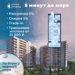 ЗВОНИТЕ ПРЯМО СЕЙЧАС, ЧТОБЫ ПОЛУЧИТЬ ВЫГОДУ ДО 650 000 руб! Цена указана со скидкой 5% при условии 100% оплаты либо ипотека. АКЦИИ: * Ипотека от 14,7% * ТРАНШЕВАЯ ИПОТЕКА - ПВ от 20%, платежи от 31000 в месяц * Рассрочка 0% до 2028г. ПВ от 20% * Скидка 5% * Бронь на 30 дней * 5 мин до моря пешком, планировки от 30 кв.м. * Высота потолков 3 м , предчистовая и чистовая отделка * Ипотека от СБЕРБАНКА * Доходность инвестиций от 30% годовых. * Сдача в аренду от управляющей компании (доверительное управление) позволяет получать доход от сдачи апартаментов без вашего участия * Безопасная сделка по ФЗ-214/эскроу-счёта "Аллея Дружбы" — это комплекс апартаментов бизнес-класса в Евпатории, расположенный в 5 минутах прогулки от золотистых пляжей Чёрного моря. Два современных 12-этажных корпуса с панорамными видами на море объединены стильным стилобатом с центральным входом и бутиковыми retail-площадями, а закрытая территория и подземный паркинг обеспечивает приватность и безопасность. АРХИТЕКТУРА И КОНСТРУКТИВНЫЕ ОСОБЕННОСТИ: • 12-этажное здание в авторском архитектурном стиле • Высота потолков (от 2,9 м до 3,1 м) • Эксклюзивное решение для первых этажей (высота потолков 3,4м) • Евро планировки с террасами и гардеробными • Панорамное ламинированное остекление • Индивидуальные келлеры • Видовые лоты на море • Высокоскоростные лифты по концепции 5* отеля • Предусмотрено резервное электроснабжение • По проекту предусмотрено место для кондиционера и практическое решение для маскировки коммуникаций ЛОКАЦИЯ И ОКРУЖЕНИЕ: • До центра Евпатории - 7 минут на машине • Пляж - всего 5 минут пешком • Рядом с комплексом развитая инфраструктура (рестораны, магазины, кафе, медицинские учреждения, санатории) ГОСТЕПРИИМСТВО И БЕЗУПРЕЧНЫЕ СЕРВИСЫ: • Управляющая компания премиум-класса • Консъерж-сервис 24/7 • Доставки продуктов и готовой еды • Зона ресепшн оформлена в стилистике комплекса • Лобби с атмосферным кафе и зонами для чтения • Премиальное решение для мест общего пользования • Интерактивная детская комната для самых маленьких • Пункты выдачи товаров от маркетплейсов • Гостевые парковочные места • Организовано место для хранения колясок ваших малышей • Ремонт на выбор "Комфорт-формат" и "Гранд-формат" БЕЗОПАСНОСТЬ И ТЕХНОЛОГИИ СПОКОЙСТВИЯ: • Закрытая территория, двор без машин • Система контроля доступа (строго по электронным пропускам) • Подземный паркинг с тремя типами машиномест • Выделенные места для велосипедов • Камеры видеонаблюдения • Круглосуточный ресепшн • Телеметрия - автоматический сбор и передача данных с приборов учета апартамента минимизирует ошибки и мошенничество • Система умного апартамента с дистанционным управлением БЛАГОУСТРОЙСТВО ТЕРРИТОРИИ: • Ландшафтный дизайн по проекту (2 334 м² озеленения) • Прогулочные аллеи и зоны отдыха для расслабления и медитации • Коворкинг-зоны с высокоскоростным Wi-Fi для бизнес-переговоров • Детские и спортивные площадки • В апарт-комплексе вас ждут мини-маркет и магазин повседневных товаров