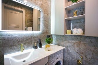 — Техника: кондиционер, варочная панель, вытяжка, холодильник, стиральная машина, водонагреватель, телевизор