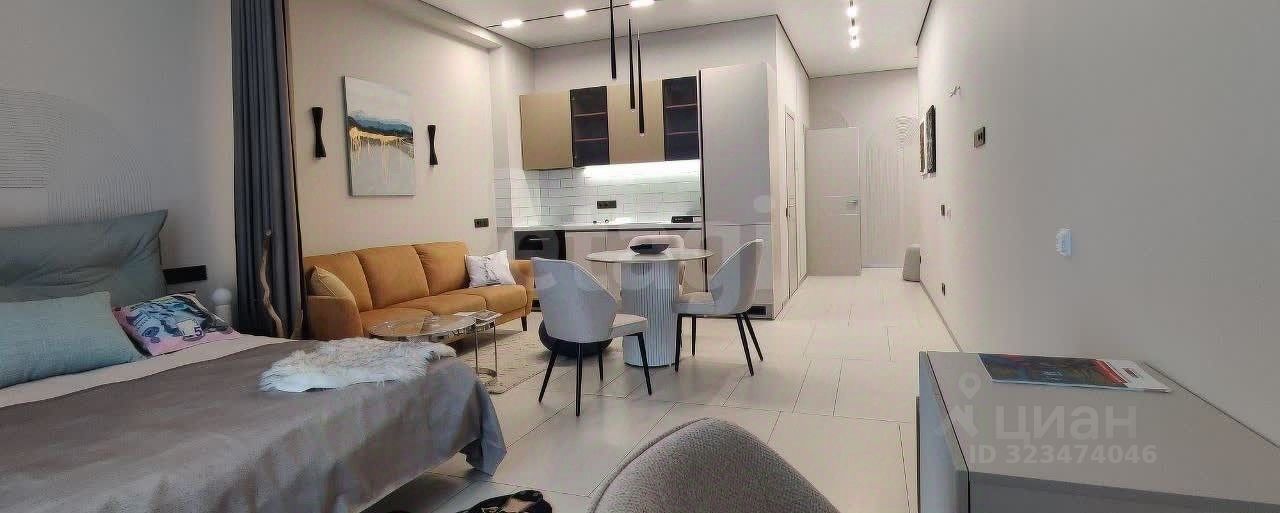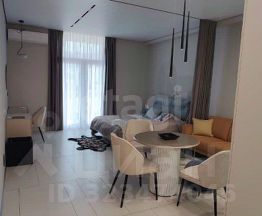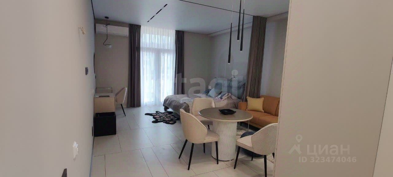 В квартире предусмотрены прихожая с гардеробной, санузел с душевой кабиной, просторная студия с выходом на террасу. Из панорамных окон и с террасы открывается вид на море, горы и городскую застройку. Помещение полностью укомплектовано современной мебелью и техникой, что позволяет заселяться сразу после покупки.
