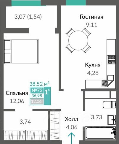 Продаётся 1-комнатная квартира в строящемся доме (Корпус 1), срок сдачи: I-кв. 2026, общей площадью 38.52 кв.м., на 10 этаже. Новый жилой комплекс "Шалфей" от застройщика "Монолит" расположен по адресу: Россия, Республика Крым, Симферополь, проспект Александра Суворова