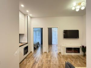 Квартира реализована по планировке евро-3: две отдельные спальни и большая общая зона для семьи с камином и плазменным экраном. В квартире две вместительные гардеробные, позволяющие разместить всю одежду и багаж. Интерьер выполнен в стиле современного минимализма с качественной отделкой. Кухня совмещена с залом, оборудована новой встроенной бытовой техникой и удобными системами хранения.