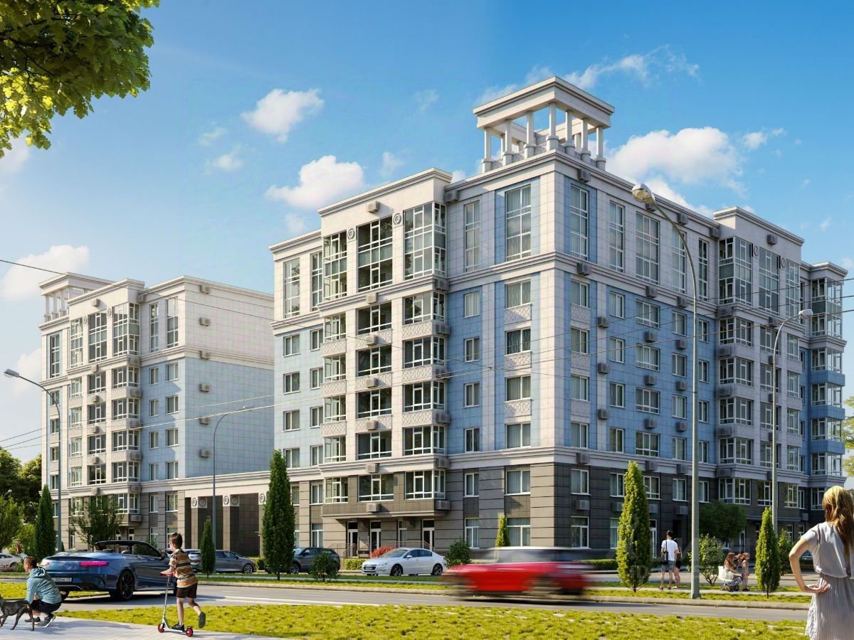 Жилой квартал состоит из 3-х многоквартирных домов П-образной формы, в каждом из которых предусмотрен собственный паркинг.