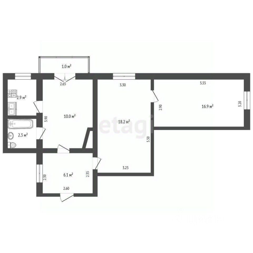 Общая площадь квартиры составляет 56,4 квадратных метра. Квартира угловая, тем не менее за счет толщины стен, сделанных из натурального ракушняка, всегда теплая и долго сохраняет тепло.