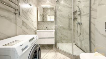 -в санузле установлена стиральная машинка Haier, сантехника Grohe,
