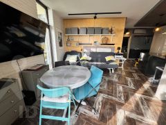 Общая площадь составляет 56 кв.м, и выполнена в стиле лофт и оснащена 4мя! балконами. 2 обычных и 2 французских.