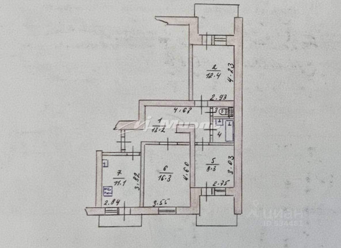 Расположена на 7-м этаже 9-ти этажного дома 2001 года постройки.