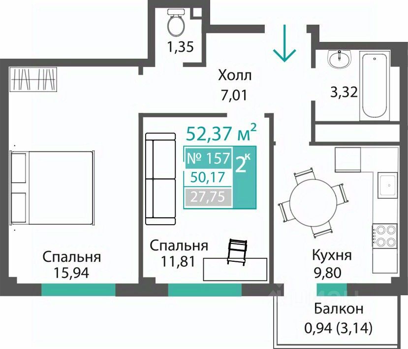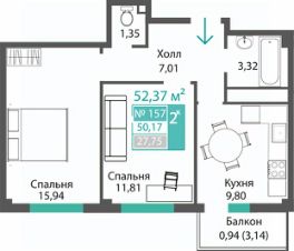 Продаётся 2-комнатная квартира в строящемся доме (ЭТАП 4, СЕКЦИИ Г1, Г2, Г3, Г4), срок сдачи: III-кв. 2028, общей площадью 50.17 кв.м., на 3 этаже. Новый жилой комплекс "Семейный квартал ПРОПОЛИС" от застройщика "Монолит" расположен по адресу: Республика Крым, Симферопольский район, с. Мирное, ул. Учительская