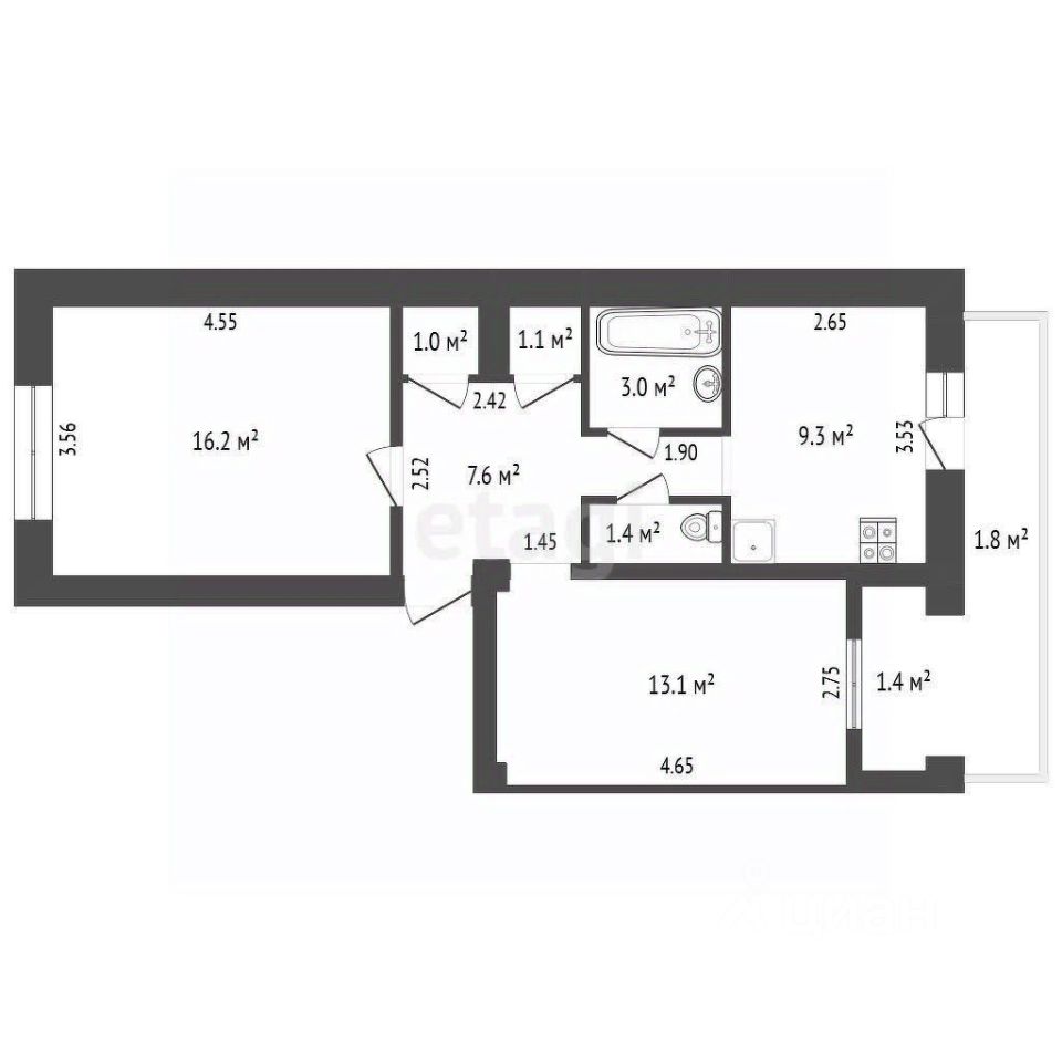 Общая площадь 52,7 кв.м. Жилая площадь 29.3 кв.м. Состояние квартиры: "заходи и живи". Все новое и в хорошем состоянии. Новые стеклопакеты. Новые радиаторы отопления. Новый бойлер на 80 литров. Новые пластиковые трубы всех стояков. Хорошая входная дверь, сделана на заказ. На все установлены счетчики. Чешская планировка, комнаты изолированные. Есть просторная лоджия. Квартира в середине дома. Окна выходят во двор, на улицу, на солнечную сторону. Во дворе открытая парковка.
