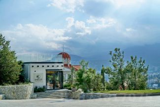 • прямой вид на море, Алушту, хвойный лес и горы;
