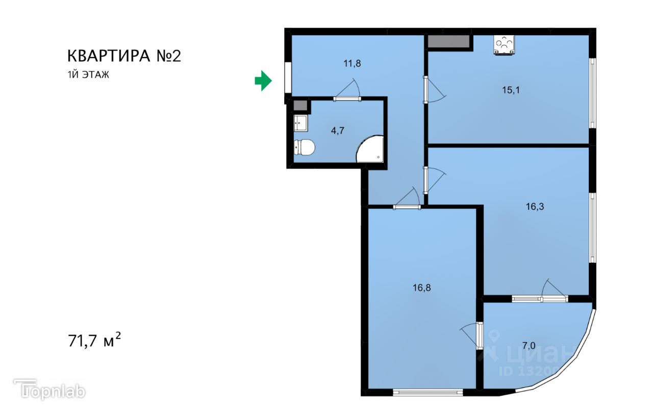 Отделка: предчистовая, разводка коммуникаций, установка котлов, радиаторов, панорамное остекление, открытый балкон, высота потолков 3 метра.