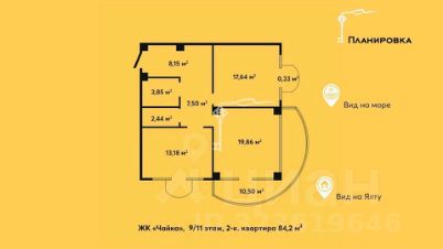 Общая площадь 84,2 м², 9-й этаж 11-го здания.