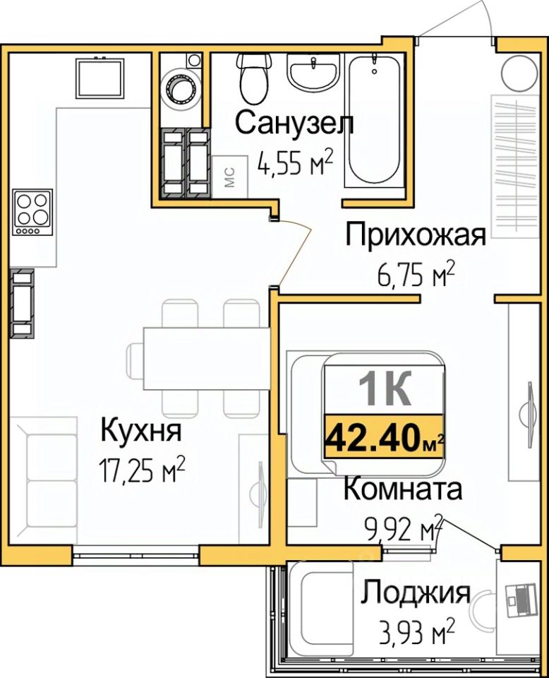 Продается 1-комн. квартира с предчистовой отделкой в ЖМ "Город Мира" на 8 этаже. Общая площадь: 40.44 кв.м., жилая: 9.92 кв.м., площадь просторной кухни-столовой: 17.25 кв.м. Все окна выходят на одну сторону. В квартире один балкон, один совмещенный санузел. Высота потолков 2.7 м.