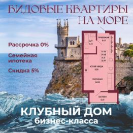 ЗВОНИТЕ ПРЯМО СЕЙЧАС, ЧТОБЫ ЗАБРОНИРОВАТЬ ЛУЧШУЮ КВАРТИРУ! Цена указана со скидкой 5% при условии 100% оплаты либо ипотека. - 80% ВИДОВЫХ КВАРТИРА НА МОРЕ ИЛИ ГОРЫ - Рассрочка 0% - Ипотека от СБЕРБАНКА - Доходность инвестиций от 40% годовых. - Безопасная сделка по ФЗ-214/эскроу-счёта Клубный дом "Ялта" — это воплощение изысканной жизни, где гармонично сочетаются статусность бизнес-класса, уют курортного отдыха и передовые технологии для комфортного проживания. Этот жилой комплекс создан для тех, кто ценит безупречное качество, безопасность и эстетику в каждой детали. Архитектура и дизайн * Современное монолитное 16-этажное здание * Фасады благородных оттенков: чистый белый, переливы шампань и тёплое золото * Первые этажи комплекса представлены в отделке рустовым камнем * Авторские интерьеры мест общего пользования * В темное время суток здания подчёркивает подсветка Характеристики квартиры и мест общего пользования * 80% лотов — с панорамными видами на море и горы. * Просторные балконы * Вместительные гардеробные и кухни-гостиные * Высокие потолки квартир 2,8 м Инфраструктура для комфортной жизни * Инфинити-бассейн * Ландшафтный дизайн и озеленение придомовой территории комплекса * Скоростные грузопассажирские лифты, соответствующие стандартам 5*-отелей, с прямым доступом в паркинг. * Кафетерий и магазин у дома * Детский веревочный комплекс "Парк-Маугли" * Скалодром * Финская сауна, хамам * На 1 этаже жилого комплекса - лапомойка и гостевой туалет Безопасность и технологии спокойствия * Закрытая территория, контролируемый доступ * Видеонаблюдение по всему периметру комплекса * Электронные домофоны с индивидуальными ключами с доступом * Безбарьерная среда * Подземный паркинг * Келлеры * Зоны хранения для велосипедов, самокатов и колясок * Мотоместа Коммуникации и инженерия * Автономная газовая котельная на крыше * Телеметрия * Класс энергоэффективности жилого комплекса "А+" * Места для кондиционеров и практическое решение для маскировки коммуникаций Расположение и ближайшие пляжи * 2,9 км до моря 10 мин на машине * 2 км от центра Ялты * Пляж Приморский — 30 мин пешком / 10 мин на авто * Пляж Массандровский — 20 мин на машине