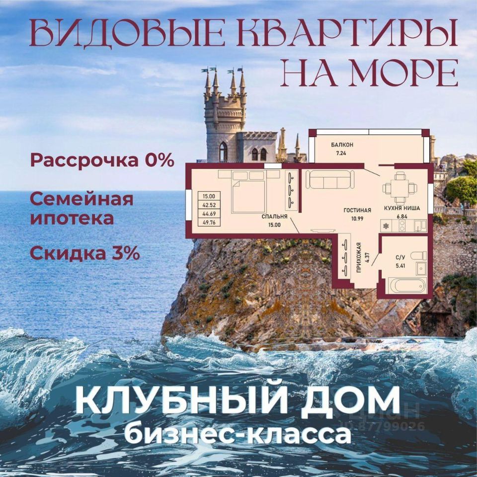 ЗВОНИТЕ ПРЯМО СЕЙЧАС, ЧТОБЫ ЗАБРОНИРОВАТЬ ЛУЧШУЮ КВАРТИРУ! - 80% ВИДОВЫХ КВАРТИРА НА МОРЕ ИЛИ ГОРЫ - Рассрочка 0% - Ипотека от СБЕРБАНКА - Доходность инвестиций от 40% годовых. - Безопасная сделка по ФЗ-214/эскроу-счёта Клубный дом "Ялта" — это воплощение изысканной жизни, где гармонично сочетаются статусность бизнес-класса, уют курортного отдыха и передовые технологии для комфортного проживания. Этот жилой комплекс создан для тех, кто ценит безупречное качество, безопасность и эстетику в каждой детали. Архитектура и дизайн * Современное монолитное 16-этажное здание * Фасады благородных оттенков: чистый белый, переливы шампань и тёплое золото * Первые этажи комплекса представлены в отделке рустовым камнем * Авторские интерьеры мест общего пользования * В темное время суток здания подчёркивает подсветка Характеристики квартиры и мест общего пользования * 80% лотов — с панорамными видами на море и горы. * Просторные балконы * Вместительные гардеробные и кухни-гостиные * Высокие потолки квартир 2,8 м Инфраструктура для комфортной жизни * Инфинити-бассейн * Ландшафтный дизайн и озеленение придомовой территории комплекса * Скоростные грузопассажирские лифты, соответствующие стандартам 5*-отелей, с прямым доступом в паркинг. * Кафетерий и магазин у дома * Детский веревочный комплекс "Парк-Маугли" * Скалодром * Финская сауна, хамам * На 1 этаже жилого комплекса - лапомойка и гостевой туалет Безопасность и технологии спокойствия * Закрытая территория, контролируемый доступ * Видеонаблюдение по всему периметру комплекса * Электронные домофоны с индивидуальными ключами с доступом * Безбарьерная среда * Подземный паркинг * Келлеры * Зоны хранения для велосипедов, самокатов и колясок * Мотоместа Коммуникации и инженерия * Автономная газовая котельная на крыше * Телеметрия * Класс энергоэффективности жилого комплекса "А+" * Места для кондиционеров и практическое решение для маскировки коммуникаций Расположение и ближайшие пляжи * 2,9 км до моря 10 мин на машине * 2 км от центра Ялты * Пляж Приморский — 30 мин пешком / 10 мин на авто * Пляж Массандровский — 20 мин на машине