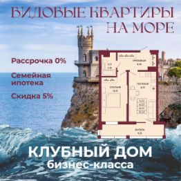 ЗВОНИТЕ ПРЯМО СЕЙЧАС, ЧТОБЫ ЗАБРОНИРОВАТЬ ЛУЧШУЮ КВАРТИРУ! Цена указана со скидкой 5% при условии 100% оплаты либо ипотека. - 80% ВИДОВЫХ КВАРТИРА НА МОРЕ ИЛИ ГОРЫ - Рассрочка 0% - Ипотека от СБЕРБАНКА - Доходность инвестиций от 40% годовых. - Безопасная сделка по ФЗ-214/эскроу-счёта Клубный дом "Ялта" — это воплощение изысканной жизни, где гармонично сочетаются статусность бизнес-класса, уют курортного отдыха и передовые технологии для комфортного проживания. Этот жилой комплекс создан для тех, кто ценит безупречное качество, безопасность и эстетику в каждой детали. Архитектура и дизайн * Современное монолитное 16-этажное здание * Фасады благородных оттенков: чистый белый, переливы шампань и тёплое золото * Первые этажи комплекса представлены в отделке рустовым камнем * Авторские интерьеры мест общего пользования * В темное время суток здания подчёркивает подсветка Характеристики квартиры и мест общего пользования * 80% лотов — с панорамными видами на море и горы. * Просторные балконы * Вместительные гардеробные и кухни-гостиные * Высокие потолки квартир 2,8 м Инфраструктура для комфортной жизни * Инфинити-бассейн * Ландшафтный дизайн и озеленение придомовой территории комплекса * Скоростные грузопассажирские лифты, соответствующие стандартам 5*-отелей, с прямым доступом в паркинг. * Кафетерий и магазин у дома * Детский веревочный комплекс "Парк-Маугли" * Скалодром * Финская сауна, хамам * На 1 этаже жилого комплекса - лапомойка и гостевой туалет Безопасность и технологии спокойствия * Закрытая территория, контролируемый доступ * Видеонаблюдение по всему периметру комплекса * Электронные домофоны с индивидуальными ключами с доступом * Безбарьерная среда * Подземный паркинг * Келлеры * Зоны хранения для велосипедов, самокатов и колясок * Мотоместа Коммуникации и инженерия * Автономная газовая котельная на крыше * Телеметрия * Класс энергоэффективности жилого комплекса "А+" * Места для кондиционеров и практическое решение для маскировки коммуникаций Расположение и ближайшие пляжи * 2,9 км до моря 10 мин на машине * 2 км от центра Ялты * Пляж Приморский — 30 мин пешком / 10 мин на авто * Пляж Массандровский — 20 мин на машине
