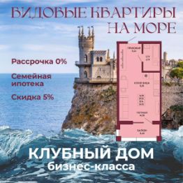 ЗВОНИТЕ ПРЯМО СЕЙЧАС, ЧТОБЫ ЗАБРОНИРОВАТЬ ЛУЧШУЮ КВАРТИРУ! Цена указана со скидкой 5% при условии 100% оплаты либо ипотека. - 80% ВИДОВЫХ КВАРТИРА НА МОРЕ ИЛИ ГОРЫ - Рассрочка 0% - Ипотека от СБЕРБАНКА - Доходность инвестиций от 40% годовых. - Безопасная сделка по ФЗ-214/эскроу-счёта Клубный дом "Ялта" — это воплощение изысканной жизни, где гармонично сочетаются статусность бизнес-класса, уют курортного отдыха и передовые технологии для комфортного проживания. Этот жилой комплекс создан для тех, кто ценит безупречное качество, безопасность и эстетику в каждой детали. Архитектура и дизайн * Современное монолитное 16-этажное здание * Фасады благородных оттенков: чистый белый, переливы шампань и тёплое золото * Первые этажи комплекса представлены в отделке рустовым камнем * Авторские интерьеры мест общего пользования * В темное время суток здания подчёркивает подсветка Характеристики квартиры и мест общего пользования * 80% лотов — с панорамными видами на море и горы. * Просторные балконы * Вместительные гардеробные и кухни-гостиные * Высокие потолки квартир 2,8 м Инфраструктура для комфортной жизни * Инфинити-бассейн * Ландшафтный дизайн и озеленение придомовой территории комплекса * Скоростные грузопассажирские лифты, соответствующие стандартам 5*-отелей, с прямым доступом в паркинг. * Кафетерий и магазин у дома * Детский веревочный комплекс "Парк-Маугли" * Скалодром * Финская сауна, хамам * На 1 этаже жилого комплекса - лапомойка и гостевой туалет Безопасность и технологии спокойствия * Закрытая территория, контролируемый доступ * Видеонаблюдение по всему периметру комплекса * Электронные домофоны с индивидуальными ключами с доступом * Безбарьерная среда * Подземный паркинг * Келлеры * Зоны хранения для велосипедов, самокатов и колясок * Мотоместа Коммуникации и инженерия * Автономная газовая котельная на крыше * Телеметрия * Класс энергоэффективности жилого комплекса "А+" * Места для кондиционеров и практическое решение для маскировки коммуникаций Расположение и ближайшие пляжи * 2,9 км до моря 10 мин на машине * 2 км от центра Ялты * Пляж Приморский — 30 мин пешком / 10 мин на авто * Пляж Массандровский — 20 мин на машине