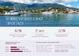 ЗВОНИТЕ ПРЯМО СЕЙЧАС, ЧТОБЫ ЗАБРОНИРОВАТЬ ЛУЧШУЮ КВАРТИРУ! Цена указана со скидкой 5% при условии 100% оплаты либо ипотека. - 80% ВИДОВЫХ КВАРТИРА НА МОРЕ ИЛИ ГОРЫ - Рассрочка 0% - Ипотека от СБЕРБАНКА - Доходность инвестиций от 40% годовых. - Безопасная сделка по ФЗ-214/эскроу-счёта Клубный дом "Ялта" — это воплощение изысканной жизни, где гармонично сочетаются статусность бизнес-класса, уют курортного отдыха и передовые технологии для комфортного проживания. Этот жилой комплекс создан для тех, кто ценит безупречное качество, безопасность и эстетику в каждой детали. Архитектура и дизайн * Современное монолитное 16-этажное здание * Фасады благородных оттенков: чистый белый, переливы шампань и тёплое золото * Первые этажи комплекса представлены в отделке рустовым камнем * Авторские интерьеры мест общего пользования * В темное время суток здания подчёркивает подсветка Характеристики квартиры и мест общего пользования * 80% лотов — с панорамными видами на море и горы. * Просторные балконы * Вместительные гардеробные и кухни-гостиные * Высокие потолки квартир 2,8 м Инфраструктура для комфортной жизни * Инфинити-бассейн * Ландшафтный дизайн и озеленение придомовой территории комплекса * Скоростные грузопассажирские лифты, соответствующие стандартам 5*-отелей, с прямым доступом в паркинг. * Кафетерий и магазин у дома * Детский веревочный комплекс "Парк-Маугли" * Скалодром * Финская сауна, хамам * На 1 этаже жилого комплекса - лапомойка и гостевой туалет Безопасность и технологии спокойствия * Закрытая территория, контролируемый доступ * Видеонаблюдение по всему периметру комплекса * Электронные домофоны с индивидуальными ключами с доступом * Безбарьерная среда * Подземный паркинг * Келлеры * Зоны хранения для велосипедов, самокатов и колясок * Мотоместа Коммуникации и инженерия * Автономная газовая котельная на крыше * Телеметрия * Класс энергоэффективности жилого комплекса "А+" * Места для кондиционеров и практическое решение для маскировки коммуникаций Расположение и ближайшие пляжи * 2,9 км до моря 10 мин на машине * 2 км от центра Ялты * Пляж Приморский — 30 мин пешком / 10 мин на авто * Пляж Массандровский — 20 мин на машине