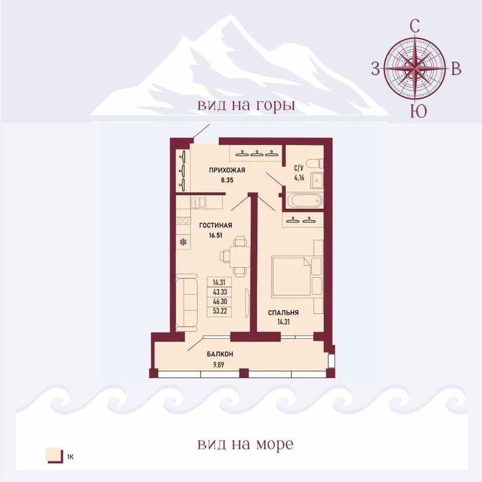 Общая площадь46,3 м²