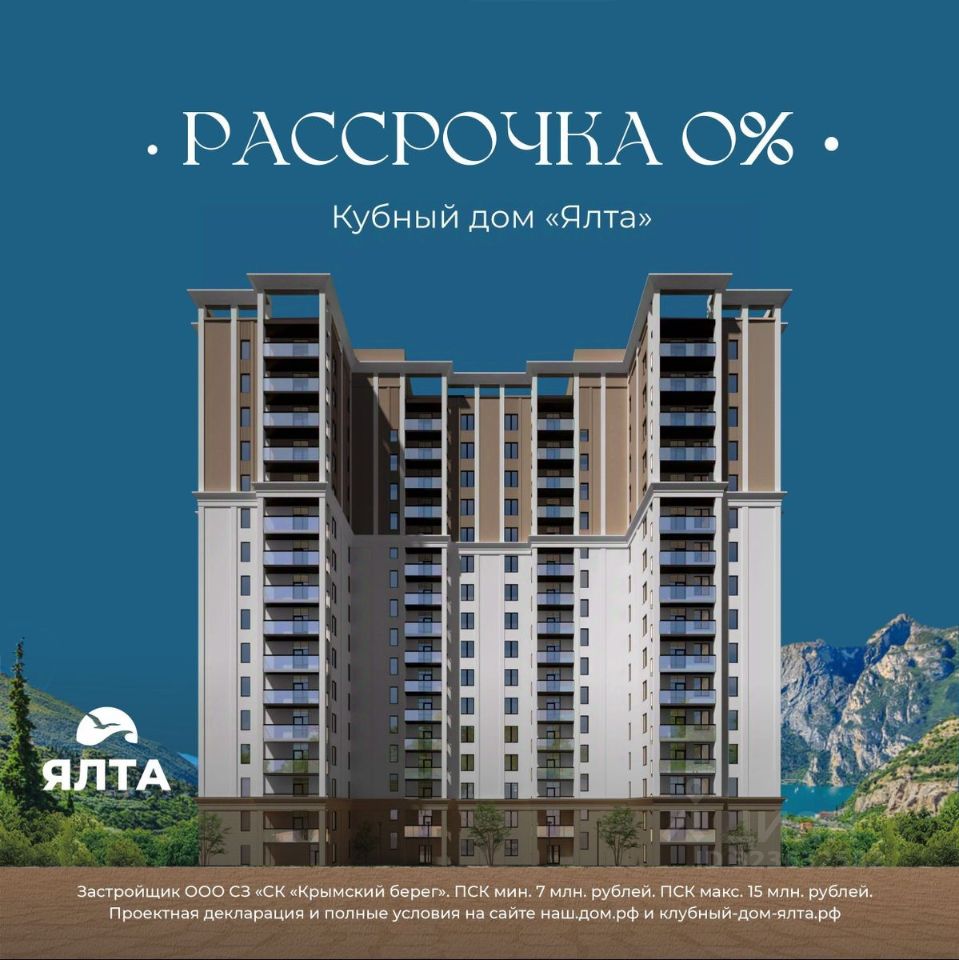 ЗВОНИТЕ ПРЯМО СЕЙЧАС, ЧТОБЫ ЗАБРОНИРОВАТЬ ЛУЧШУЮ КВАРТИРУ! - 80% ВИДОВЫХ КВАРТИРА НА МОРЕ ИЛИ ГОРЫ - Рассрочка 0% - Ипотека от СБЕРБАНКА - Доходность инвестиций от 40% годовых. - Безопасная сделка по ФЗ-214/эскроу-счёта Клубный дом "Ялта" — это воплощение изысканной жизни, где гармонично сочетаются статусность бизнес-класса, уют курортного отдыха и передовые технологии для комфортного проживания. Этот жилой комплекс создан для тех, кто ценит безупречное качество, безопасность и эстетику в каждой детали. Архитектура и дизайн * Современное монолитное 16-этажное здание * Фасады благородных оттенков: чистый белый, переливы шампань и тёплое золото * Первые этажи комплекса представлены в отделке рустовым камнем * Авторские интерьеры мест общего пользования * В темное время суток здания подчёркивает подсветка Характеристики квартиры и мест общего пользования * 80% лотов — с панорамными видами на море и горы. * Просторные балконы * Вместительные гардеробные и кухни-гостиные * Высокие потолки квартир 2,8 м Инфраструктура для комфортной жизни * Инфинити-бассейн * Ландшафтный дизайн и озеленение придомовой территории комплекса * Скоростные грузопассажирские лифты, соответствующие стандартам 5*-отелей, с прямым доступом в паркинг. * Кафетерий и магазин у дома * Детский веревочный комплекс "Парк-Маугли" * Скалодром * Финская сауна, хамам * На 1 этаже жилого комплекса - лапомойка и гостевой туалет Безопасность и технологии спокойствия * Закрытая территория, контролируемый доступ * Видеонаблюдение по всему периметру комплекса * Электронные домофоны с индивидуальными ключами с доступом * Безбарьерная среда * Подземный паркинг * Келлеры * Зоны хранения для велосипедов, самокатов и колясок * Мотоместа Коммуникации и инженерия * Автономная газовая котельная на крыше * Телеметрия * Класс энергоэффективности жилого комплекса "А+" * Места для кондиционеров и практическое решение для маскировки коммуникаций Расположение и ближайшие пляжи * 2,9 км до моря 10 мин на машине * 2 км от центра Ялты * Пляж Приморский — 30 мин пешком / 10 мин на авто * Пляж Массандровский — 20 мин на машине