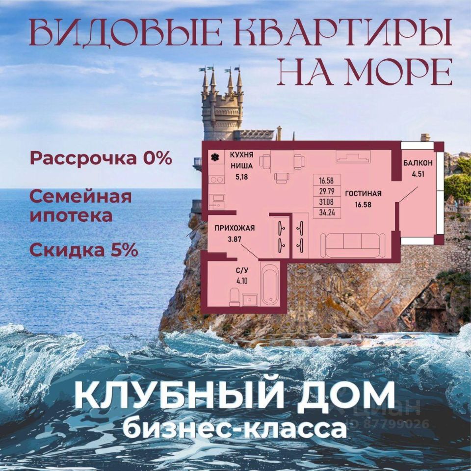 ЗВОНИТЕ ПРЯМО СЕЙЧАС, ЧТОБЫ ЗАБРОНИРОВАТЬ ЛУЧШУЮ КВАРТИРУ! Цена указана со скидкой 5% при условии 100% оплаты либо ипотека. - 80% ВИДОВЫХ КВАРТИРА НА МОРЕ ИЛИ ГОРЫ - Рассрочка 0% - Ипотека от СБЕРБАНКА - Доходность инвестиций от 40% годовых. - Безопасная сделка по ФЗ-214/эскроу-счёта Клубный дом "Ялта" — это воплощение изысканной жизни, где гармонично сочетаются статусность бизнес-класса, уют курортного отдыха и передовые технологии для комфортного проживания. Этот жилой комплекс создан для тех, кто ценит безупречное качество, безопасность и эстетику в каждой детали. Архитектура и дизайн * Современное монолитное 16-этажное здание * Фасады благородных оттенков: чистый белый, переливы шампань и тёплое золото * Первые этажи комплекса представлены в отделке рустовым камнем * Авторские интерьеры мест общего пользования * В темное время суток здания подчёркивает подсветка Характеристики квартиры и мест общего пользования * 80% лотов — с панорамными видами на море и горы. * Просторные балконы * Вместительные гардеробные и кухни-гостиные * Высокие потолки квартир 2,8 м Инфраструктура для комфортной жизни * Инфинити-бассейн * Ландшафтный дизайн и озеленение придомовой территории комплекса * Скоростные грузопассажирские лифты, соответствующие стандартам 5*-отелей, с прямым доступом в паркинг. * Кафетерий и магазин у дома * Детский веревочный комплекс "Парк-Маугли" * Скалодром * Финская сауна, хамам * На 1 этаже жилого комплекса - лапомойка и гостевой туалет Безопасность и технологии спокойствия * Закрытая территория, контролируемый доступ * Видеонаблюдение по всему периметру комплекса * Электронные домофоны с индивидуальными ключами с доступом * Безбарьерная среда * Подземный паркинг * Келлеры * Зоны хранения для велосипедов, самокатов и колясок * Мотоместа Коммуникации и инженерия * Автономная газовая котельная на крыше * Телеметрия * Класс энергоэффективности жилого комплекса "А+" * Места для кондиционеров и практическое решение для маскировки коммуникаций Расположение и ближайшие пляжи * 2,9 км до моря 10 мин на машине * 2 км от центра Ялты * Пляж Приморский — 30 мин пешком / 10 мин на авто * Пляж Массандровский — 20 мин на машине