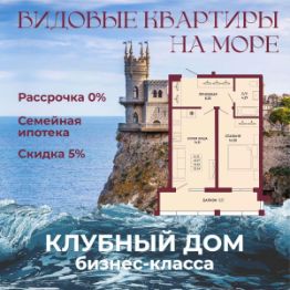 ЗВОНИТЕ ПРЯМО СЕЙЧАС, ЧТОБЫ ЗАБРОНИРОВАТЬ ЛУЧШУЮ КВАРТИРУ! Цена указана со скидкой 5% при условии 100% оплаты либо ипотека. - 80% ВИДОВЫХ КВАРТИРА НА МОРЕ ИЛИ ГОРЫ - Рассрочка 0% - Ипотека от СБЕРБАНКА - Доходность инвестиций от 40% годовых. - Безопасная сделка по ФЗ-214/эскроу-счёта Клубный дом "Ялта" — это воплощение изысканной жизни, где гармонично сочетаются статусность бизнес-класса, уют курортного отдыха и передовые технологии для комфортного проживания. Этот жилой комплекс создан для тех, кто ценит безупречное качество, безопасность и эстетику в каждой детали. Архитектура и дизайн * Современное монолитное 16-этажное здание * Фасады благородных оттенков: чистый белый, переливы шампань и тёплое золото * Первые этажи комплекса представлены в отделке рустовым камнем * Авторские интерьеры мест общего пользования * В темное время суток здания подчёркивает подсветка Характеристики квартиры и мест общего пользования * 80% лотов — с панорамными видами на море и горы. * Просторные балконы * Вместительные гардеробные и кухни-гостиные * Высокие потолки квартир 2,8 м Инфраструктура для комфортной жизни * Инфинити-бассейн * Ландшафтный дизайн и озеленение придомовой территории комплекса * Скоростные грузопассажирские лифты, соответствующие стандартам 5*-отелей, с прямым доступом в паркинг. * Кафетерий и магазин у дома * Детский веревочный комплекс "Парк-Маугли" * Скалодром * Финская сауна, хамам * На 1 этаже жилого комплекса - лапомойка и гостевой туалет Безопасность и технологии спокойствия * Закрытая территория, контролируемый доступ * Видеонаблюдение по всему периметру комплекса * Электронные домофоны с индивидуальными ключами с доступом * Безбарьерная среда * Подземный паркинг * Келлеры * Зоны хранения для велосипедов, самокатов и колясок * Мотоместа Коммуникации и инженерия * Автономная газовая котельная на крыше * Телеметрия * Класс энергоэффективности жилого комплекса "А+" * Места для кондиционеров и практическое решение для маскировки коммуникаций Расположение и ближайшие пляжи * 2,9 км до моря 10 мин на машине * 2 км от центра Ялты * Пляж Приморский — 30 мин пешком / 10 мин на авто * Пляж Массандровский — 20 мин на машине