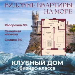ЗВОНИТЕ ПРЯМО СЕЙЧАС, ЧТОБЫ ЗАБРОНИРОВАТЬ ЛУЧШУЮ КВАРТИРУ! Цена указана со скидкой 5% при условии 100% оплаты либо ипотека. - 80% ВИДОВЫХ КВАРТИРА НА МОРЕ ИЛИ ГОРЫ - Рассрочка 0% - Ипотека от СБЕРБАНКА - Доходность инвестиций от 40% годовых. - Безопасная сделка по ФЗ-214/эскроу-счёта Клубный дом "Ялта" — это воплощение изысканной жизни, где гармонично сочетаются статусность бизнес-класса, уют курортного отдыха и передовые технологии для комфортного проживания. Этот жилой комплекс создан для тех, кто ценит безупречное качество, безопасность и эстетику в каждой детали. Архитектура и дизайн * Современное монолитное 16-этажное здание * Фасады благородных оттенков: чистый белый, переливы шампань и тёплое золото * Первые этажи комплекса представлены в отделке рустовым камнем * Авторские интерьеры мест общего пользования * В темное время суток здания подчёркивает подсветка Характеристики квартиры и мест общего пользования * 80% лотов — с панорамными видами на море и горы. * Просторные балконы * Вместительные гардеробные и кухни-гостиные * Высокие потолки квартир 2,8 м Инфраструктура для комфортной жизни * Инфинити-бассейн * Ландшафтный дизайн и озеленение придомовой территории комплекса * Скоростные грузопассажирские лифты, соответствующие стандартам 5*-отелей, с прямым доступом в паркинг. * Кафетерий и магазин у дома * Детский веревочный комплекс "Парк-Маугли" * Скалодром * Финская сауна, хамам * На 1 этаже жилого комплекса - лапомойка и гостевой туалет Безопасность и технологии спокойствия * Закрытая территория, контролируемый доступ * Видеонаблюдение по всему периметру комплекса * Электронные домофоны с индивидуальными ключами с доступом * Безбарьерная среда * Подземный паркинг * Келлеры * Зоны хранения для велосипедов, самокатов и колясок * Мотоместа Коммуникации и инженерия * Автономная газовая котельная на крыше * Телеметрия * Класс энергоэффективности жилого комплекса "А+" * Места для кондиционеров и практическое решение для маскировки коммуникаций Расположение и ближайшие пляжи * 2,9 км до моря 10 мин на машине * 2 км от центра Ялты * Пляж Приморский — 30 мин пешком / 10 мин на авто * Пляж Массандровский — 20 мин на машине