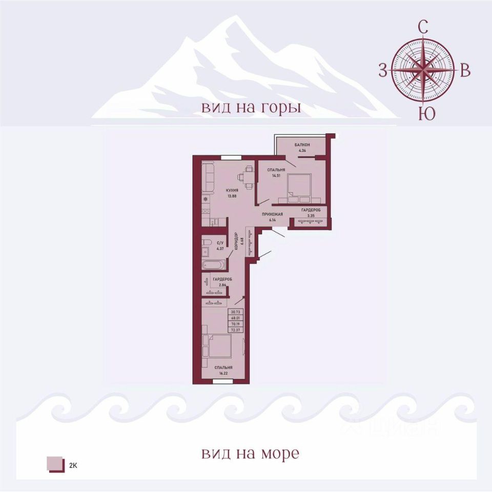 Продается 2-комн. квартира, 70,19 м²