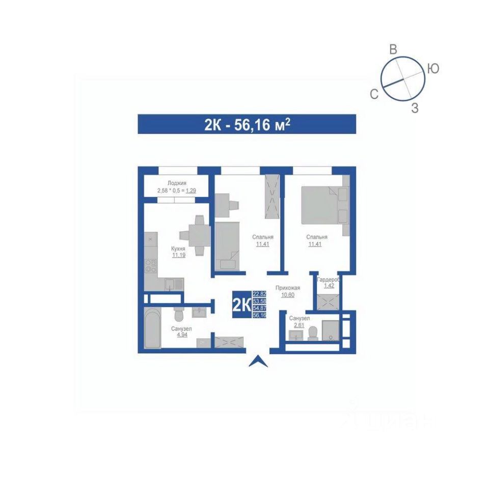 54,87 м²