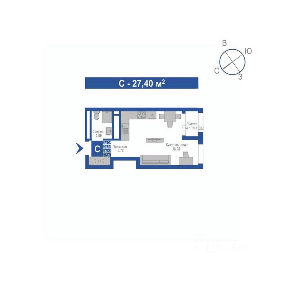 Общая площадь26,53 м²