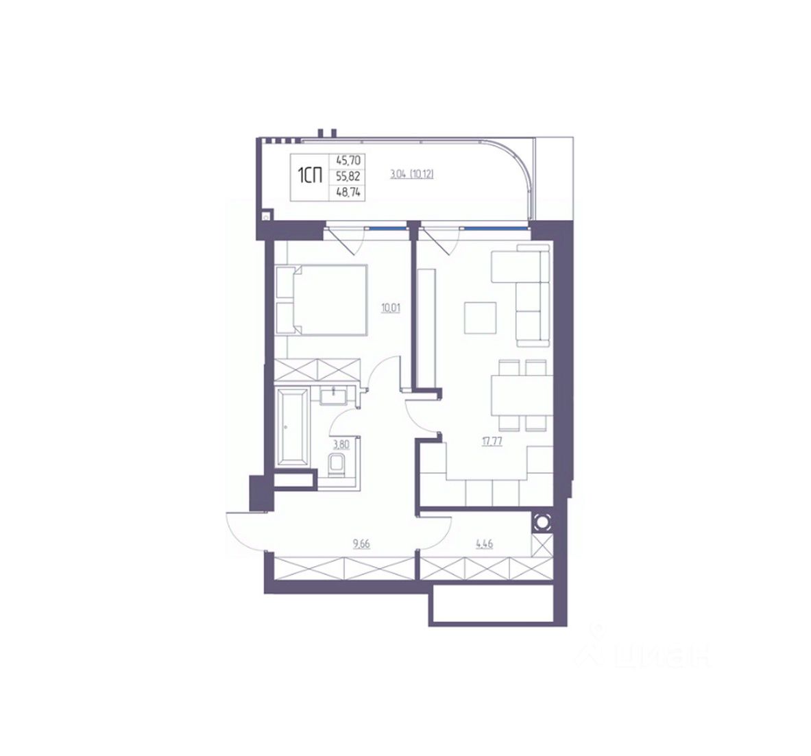 Общая площадь55,82 м²