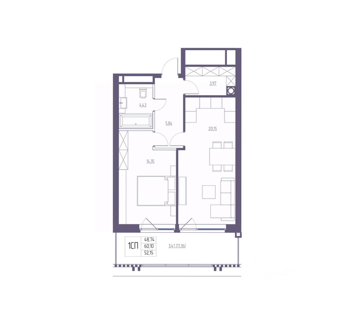 Общая площадь60,1 м²