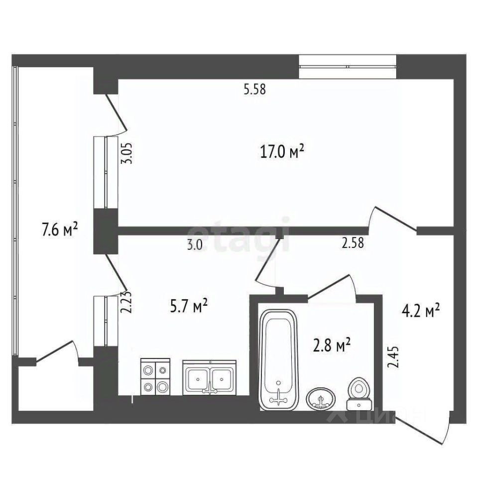 Объект готов к проведению отделки по собственному проекту.