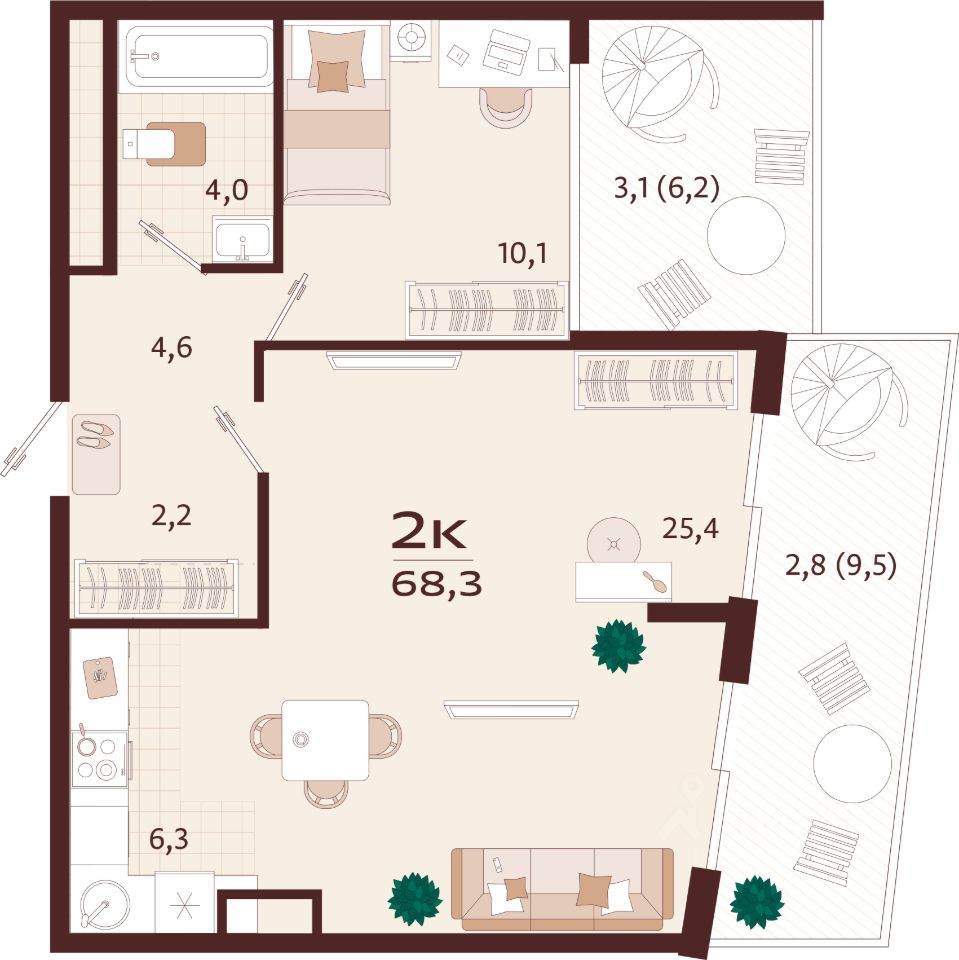 Общая площадь68,3 м²