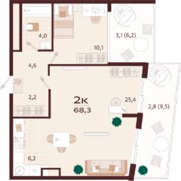 Общая площадь68,3 м²