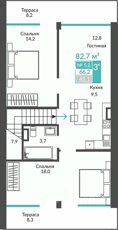 Продаются 3-комнатные апартаменты в строящемся доме (Корпус 2), срок сдачи: III-кв. 2024, общей площадью 82.6 кв.м., на 2 этаже. КУРОРТНЫЙ КЛУБ С ЗАБОТЛИВЫМ СЕРВИСОМ