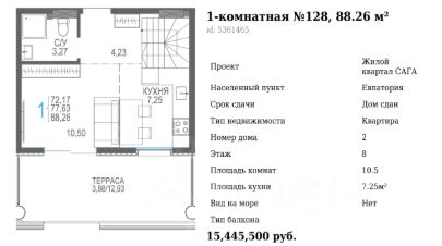 Вашему вниманию предлагается двухуровневая квартира у моря. Жилой Комплекс Сдан. Можно приступать к выполнению ремонта. Наши цены от застройщика без дополнительных затрат. Работаем с любовью без комиссии . Выезд на место по предварительной договоренности. Рассрочка - Первоначальный Взнос от - 20% и остаток равными платежами до сентября 2026 года. Ипотека в банках : Сбер, ВТБ, Россия. При 100% оплате предоставляется скидка 5% О ПРОЕКТЕ Курортный комплекс "Прибрежный" расположен на Западном побережье Крыма у кромки Каламитского залива между курортными городами Евпатория и Саки. Экологически чистое место бальнеологического курорта находится на косе между Чёрным морем и розовым озером Сасык-Сиваш в непосредственной близости к Сакским лечебным грязевым лиманам. АРХИТЕКТУРНАЯ КОНЦЕПЦИЯ Сочетание разных типов фасадов и переменная этажность зданий создают уникальный образ каждой улицы. Квартальная застройка комплекса защищает внутренние дворы от случайных гостей и делает их более уютными. Приватные пространства дворов, балконов террас позволяют значительную часть суток проводить под открытым небом, вдыхая свежий морской воздух. Свободные общественные пространства улиц со стрит-ритейлом, благоустроенные площади скверы. КОМФОРТНЫЕ ОБЩЕСТВЕННЫЕ ЗОНЫ ОТДЫХА Внутренние пространства дворов приватны и безопасны. Можно с комфортом провести время в тенистых беседках или прогуляться променадной площади с фонтаном. Позаботились и о наших маленьких жильцах, специально для них будут построены современные игровые комплексы. Уличный стрит-ритейл насыщает жизнь в жилом комплексе в течение дня. Кафе и рестораны могут размещать посадочные места вдоль фасадов, привлекая посетителей. Благоустройство является важным элементом комфортной среды для отдыха, поэтому в ЖК предусмотрено комплексное озеленение. До Моря 800 метров, песчаный пляж. Доступ в дома по смарт-картам. В ЖК предусмотрено комплексное озеленение с автополивом. Став резидентом ЖК SAGA, Вы приобретаете не просто "квадратные метры", а особый образ жизни. Застройщик работает по ФЗ-214 с использованием эскроу-счетов. Средства на счёт вносит покупатель, а застройщик получает их только после успешной сдачи дома в эксплуатацию. Основное преимущество такого подхода в расчётах безопасность и гарантия, отсутствие рисков. Ипотека, в том числе военная, маткапитал. Для удобства наших Клиентов доступен онлайн показ и полностью дистанционное оформление сделки без визита в Крым. Приобретая жилье в нашей компании, Вы останетесь довольны.