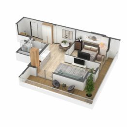 Все апартаменты имеют балконы, преобладающая часть ориентирована в сторону моря.Вокруг здания и на крыше блока есть места для отдыха с скамейками, клумбами и садовой мебелью.