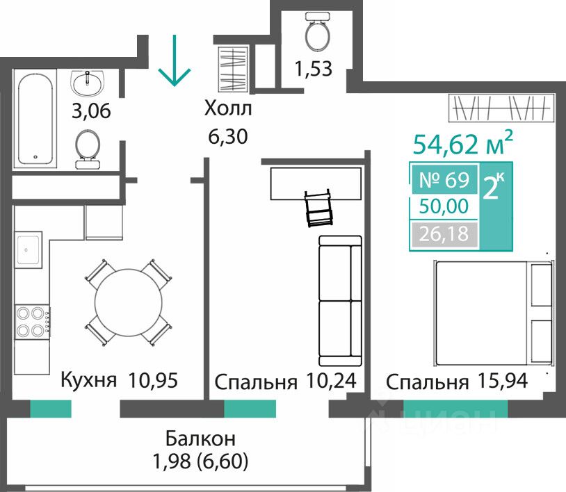 Продаётся 2-комнатная квартира в строящемся доме (ЭТАП 2, СЕКЦИИ Б1, Б2, Б3, Б4), срок сдачи: III-кв. 2028, общей площадью 50 кв.м., на 7 этаже. Новый жилой комплекс "Семейный квартал ПРОПОЛИС" от застройщика "Монолит" расположен по адресу: Республика Крым, Симферопольский район, с. Мирное, ул. Учительская