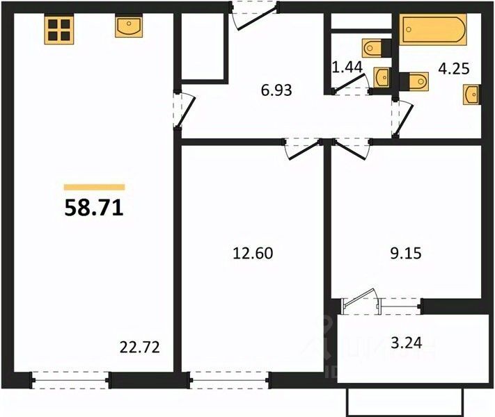Квартира площадью 58,7 кв.м., имеет удобную планировку, просторная кухня, изолированные комнаты, раздельный санузел, балкон - все для вашего комфорта. Выполнена черновая отделка, что позволит воплотить в реальность Ваш эксклюзивный ремонт.