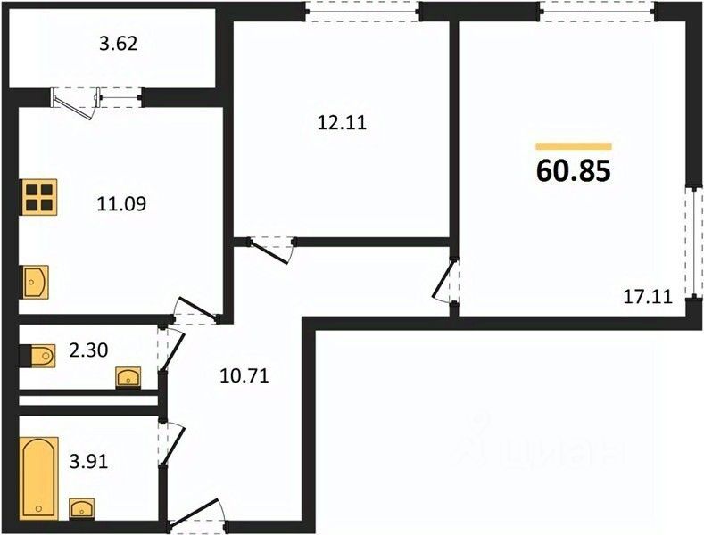 Квартира площадью 60,8 кв.м., имеет удобную планировку: просторная кухня, изолированные комнаты, раздельный санузел, балкон - все для вашего комфорта. Выполнена черновая отделка, что позволит воплотить в реальность Ваш эксклюзивный ремонт.