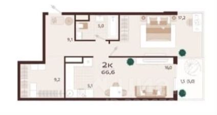- площадь 66,6 кв.м;