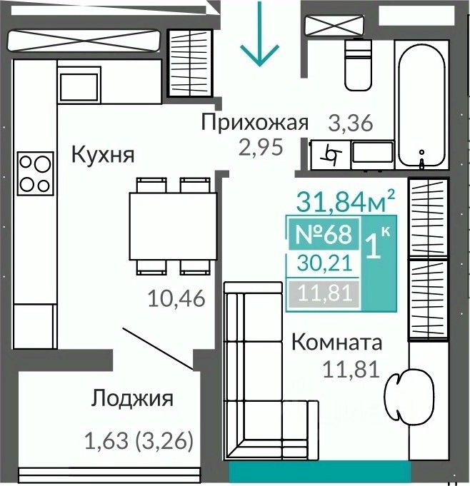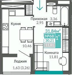 Продаётся 1-комнатная квартира в строящемся доме (С7), срок сдачи: III-кв. 2027, общей площадью 30.21 кв.м., на 9 этаже. Жилой квартал "Абрикос" - начало яркой истории жизни в прогрессивном районе Симферополя - Семья городских кварталов "Крымская Роза".