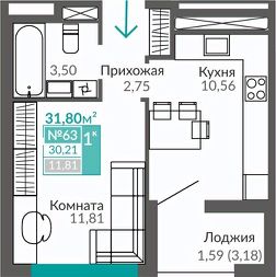Продаётся 1-комнатная квартира в строящемся доме (С7), срок сдачи: III-кв. 2027, общей площадью 30.21 кв.м., на 9 этаже. Жилой квартал "Абрикос" - начало яркой истории жизни в прогрессивном районе Симферополя - Семья городских кварталов "Крымская Роза".