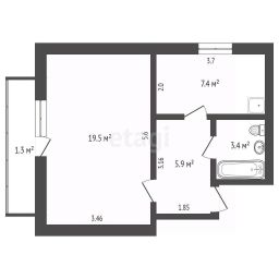 Продается 1-комнатная квартира на улице Линейная. Общая площадь составляет 36.2 кв. м.