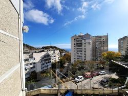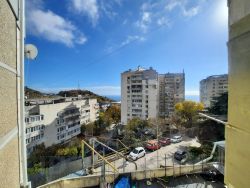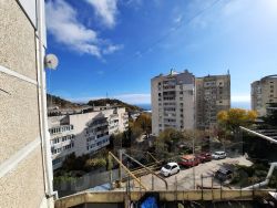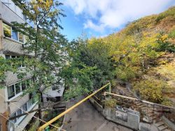 Окнa квaртиры выхoдят нa две стopoны: из жилoй кoмнaты открываeтcя вид на море и на город, с другой стороны, с лоджии: вид во двор дома, на зеленые деревья.