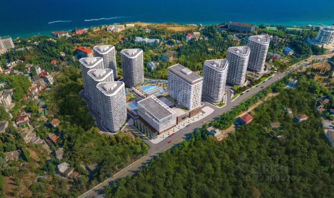 В продаже — студия-апартаменты в апарт-комплексе бизнес-класса "Крымская Резиденция". Апартаменты площадью 27,36 кв. м располагаются на 8 этаже строящегося корпуса 6. Сдача дома запланирована на четвёртый квартал 2025 года. В апартаментах будет отделка white box и панорамное остекление. Комплекс находится всего в 500 метрах от моря.